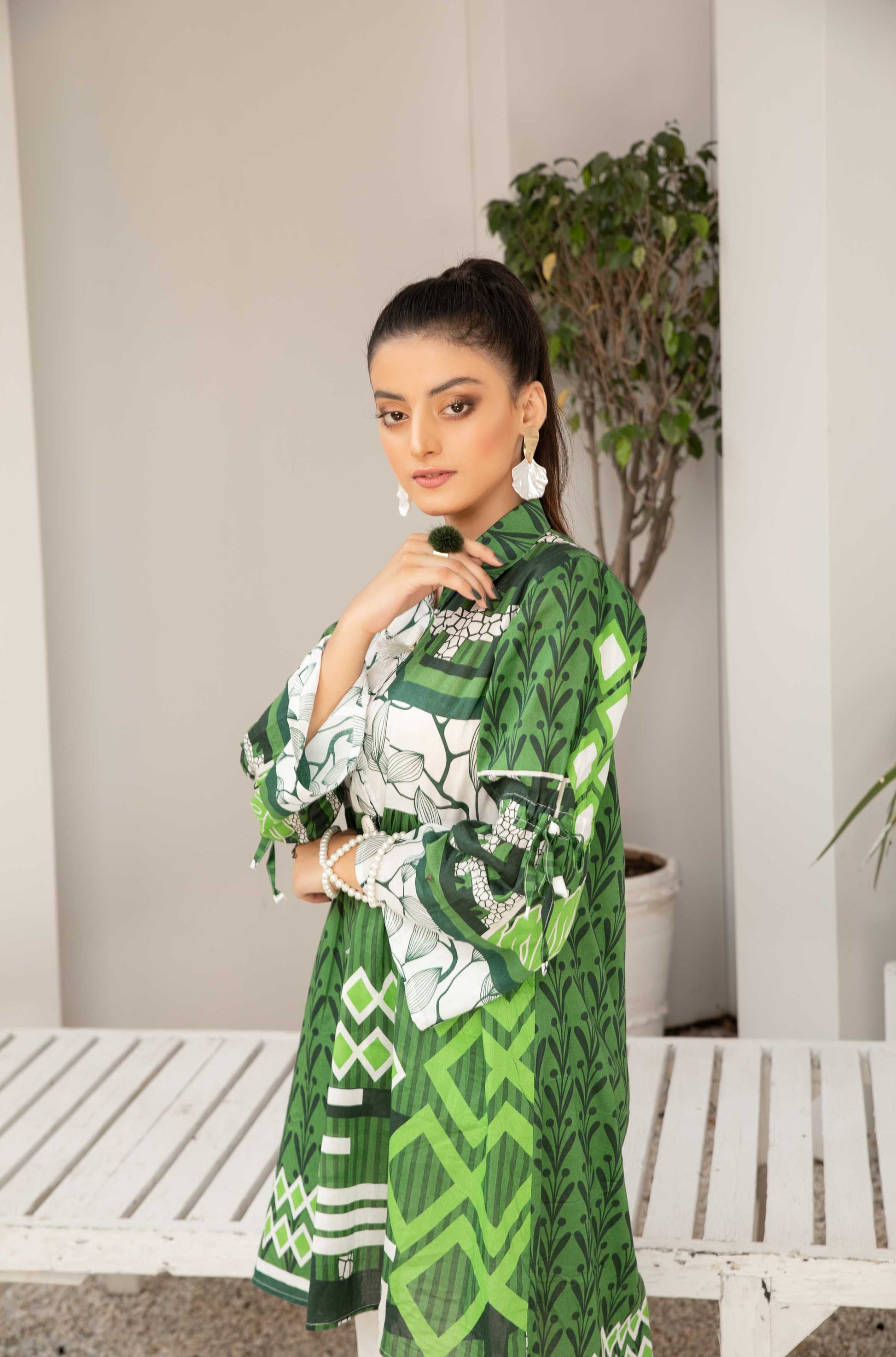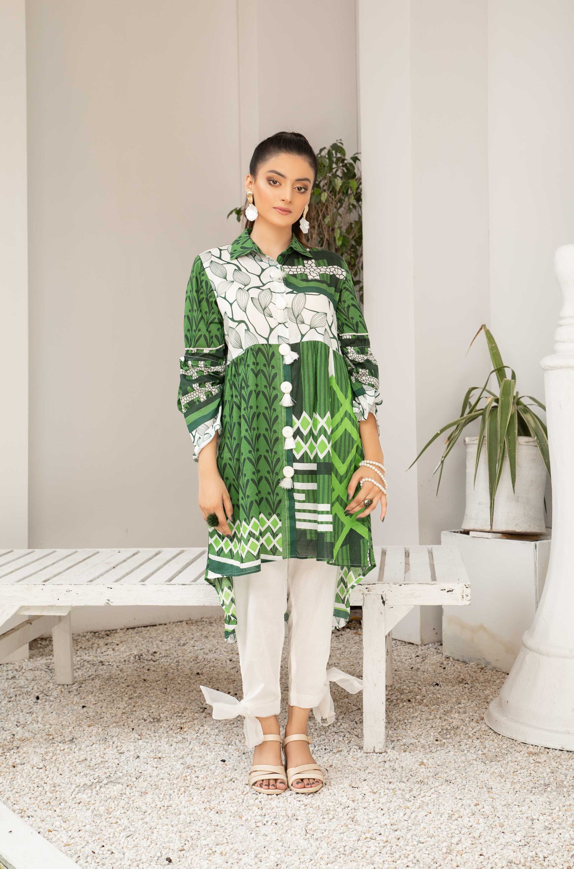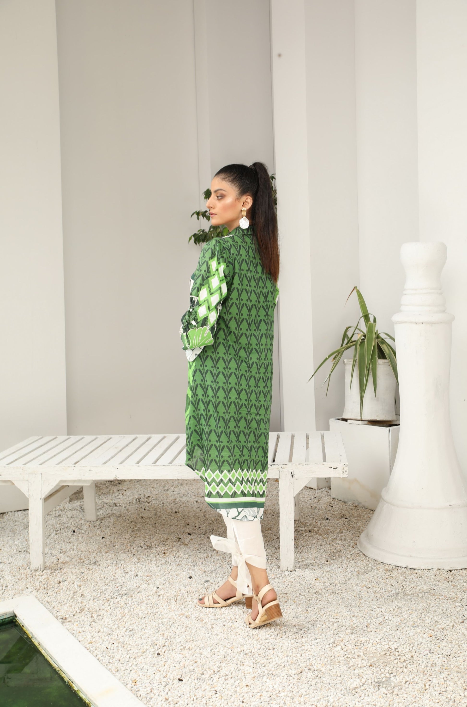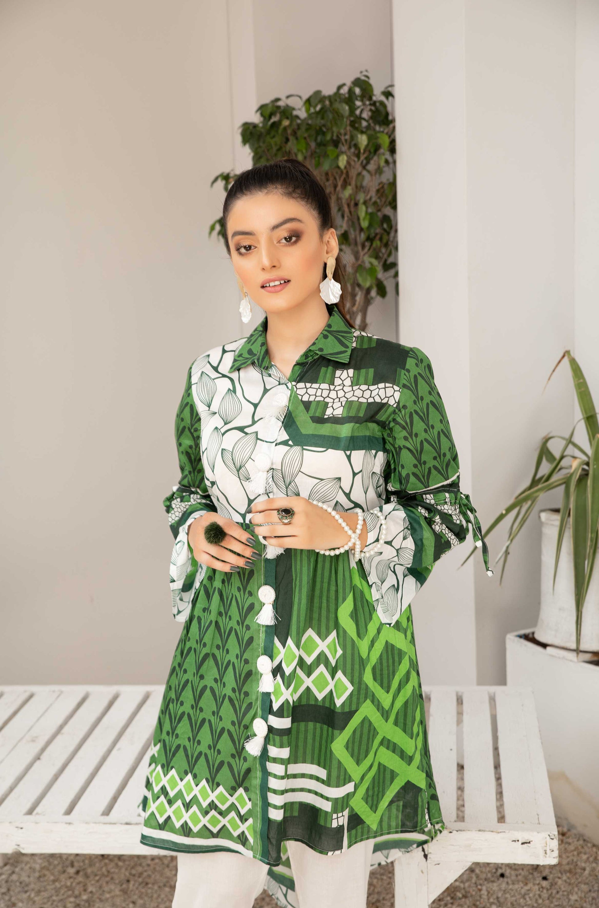 A perfect lawn top for you to match independence vibes with its intricate digital print in perfect harmony with white.