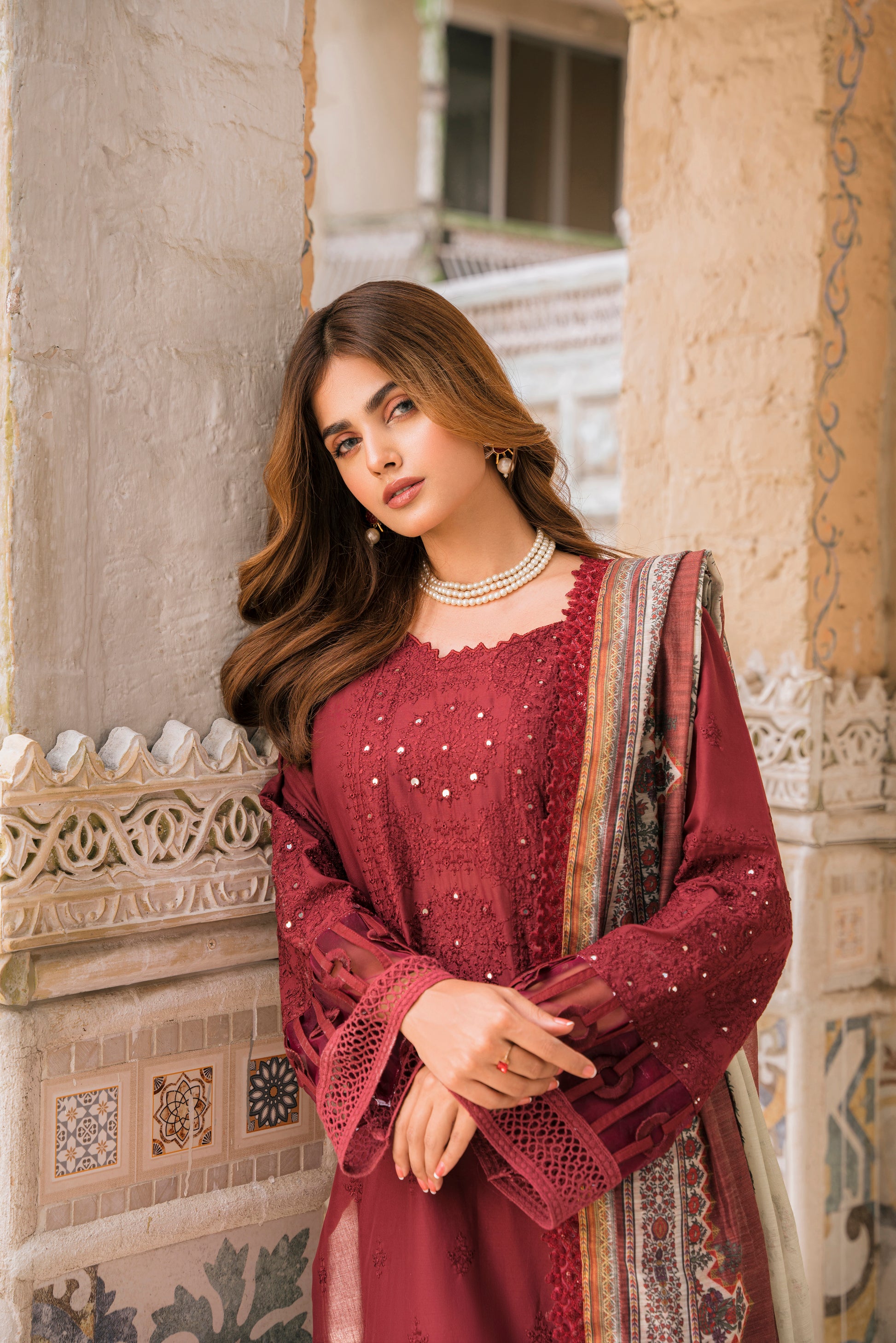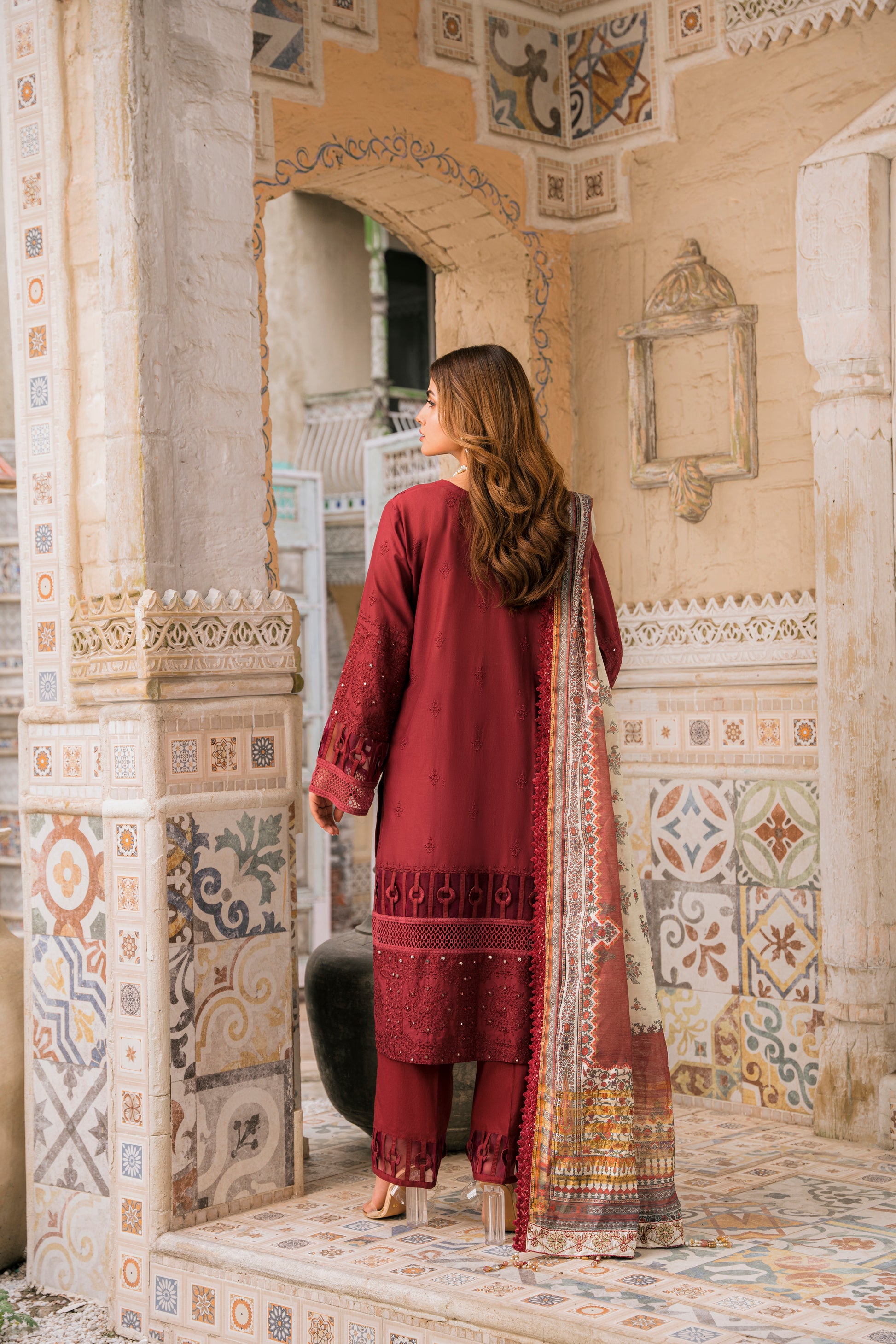 -Embroidered Solid light Lawn Shirt Back 1 Mtr