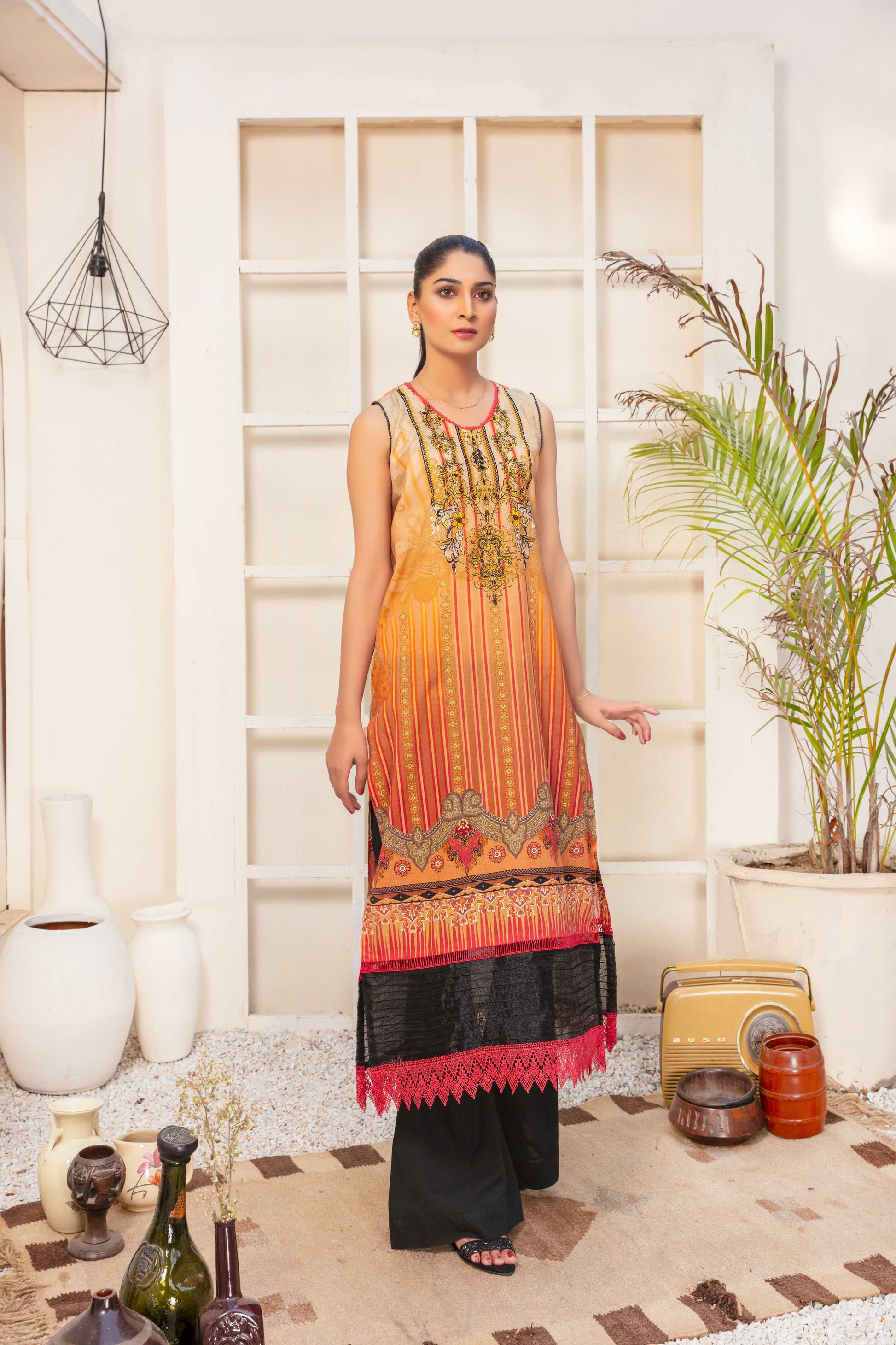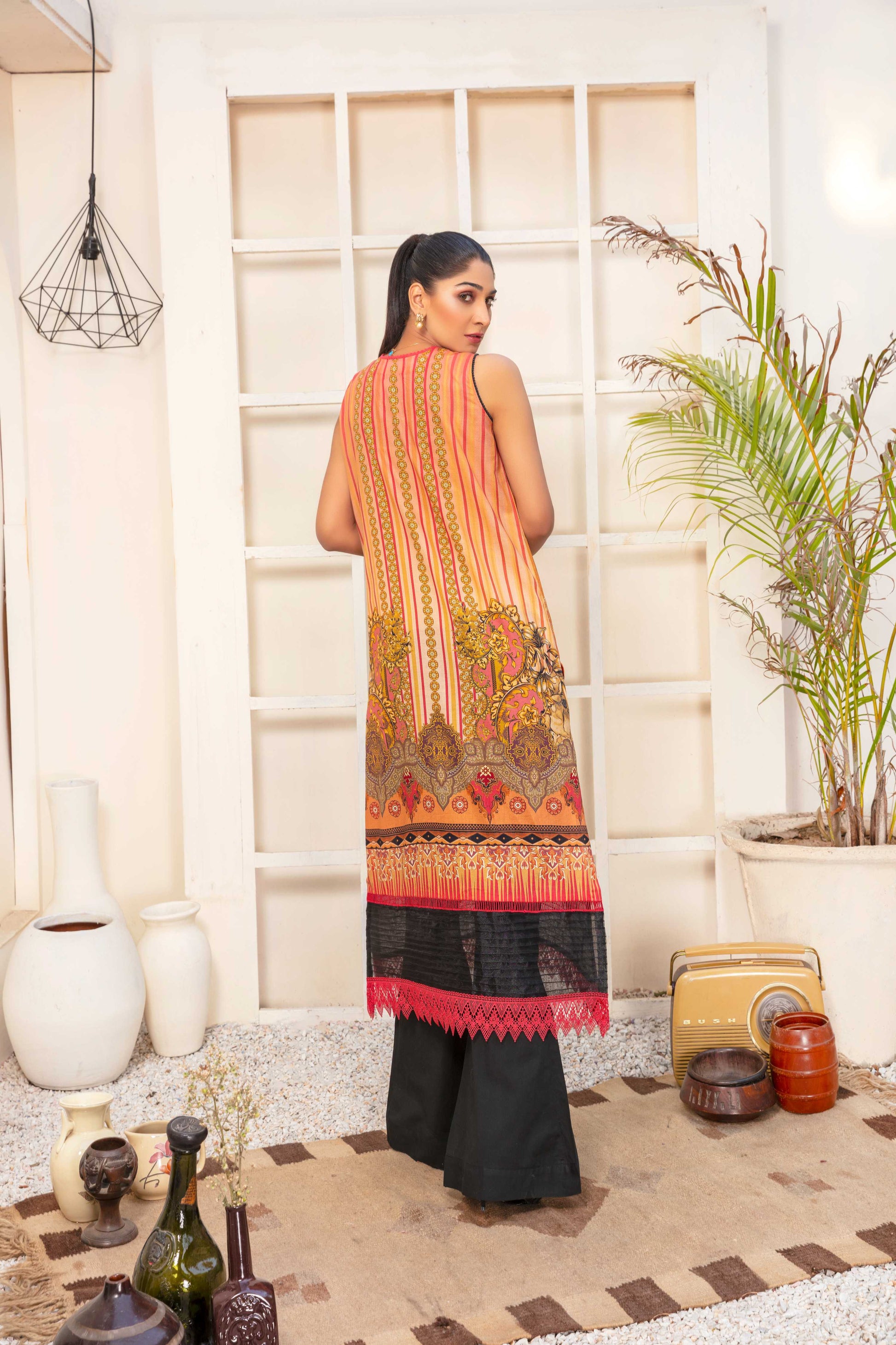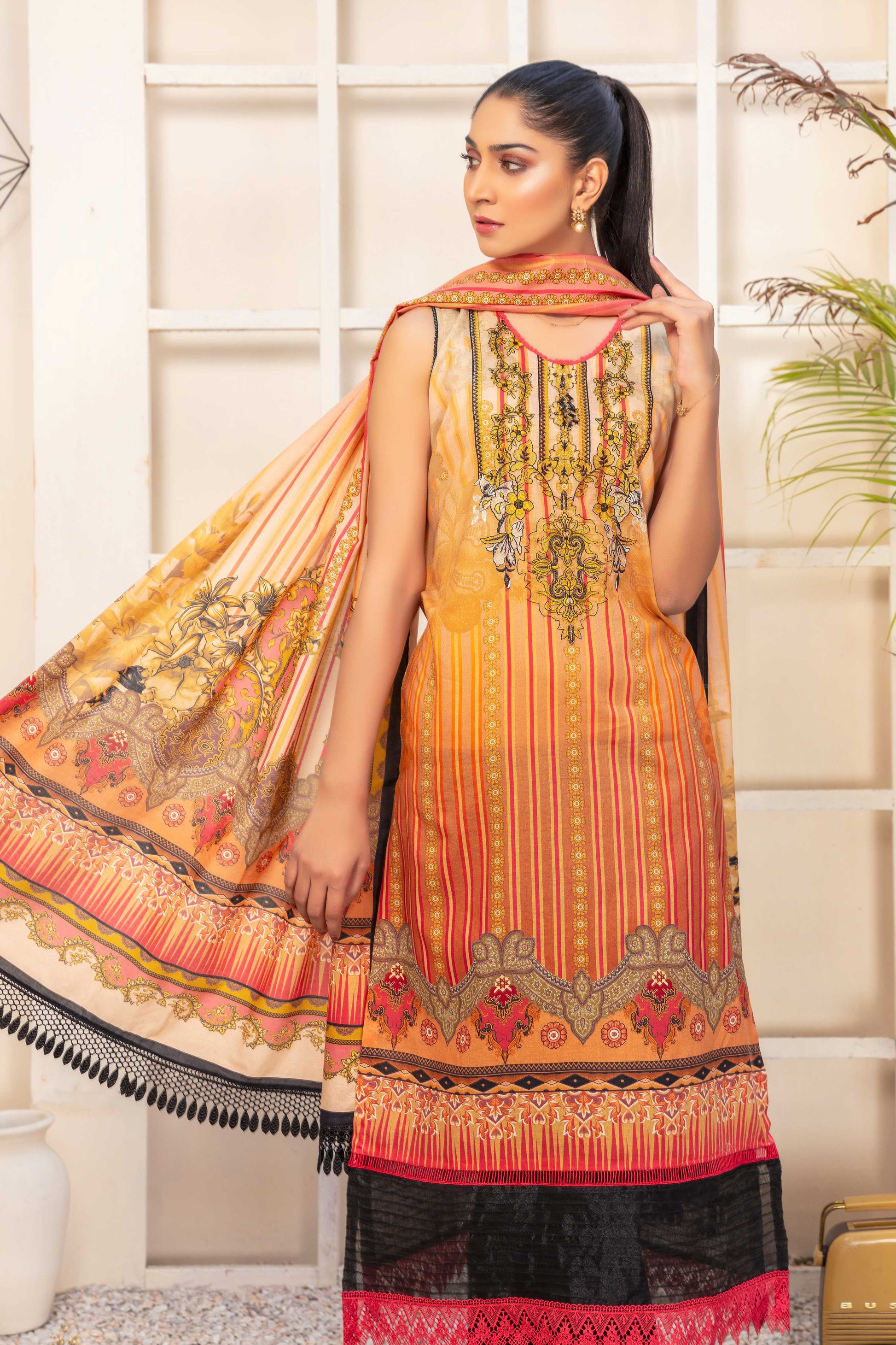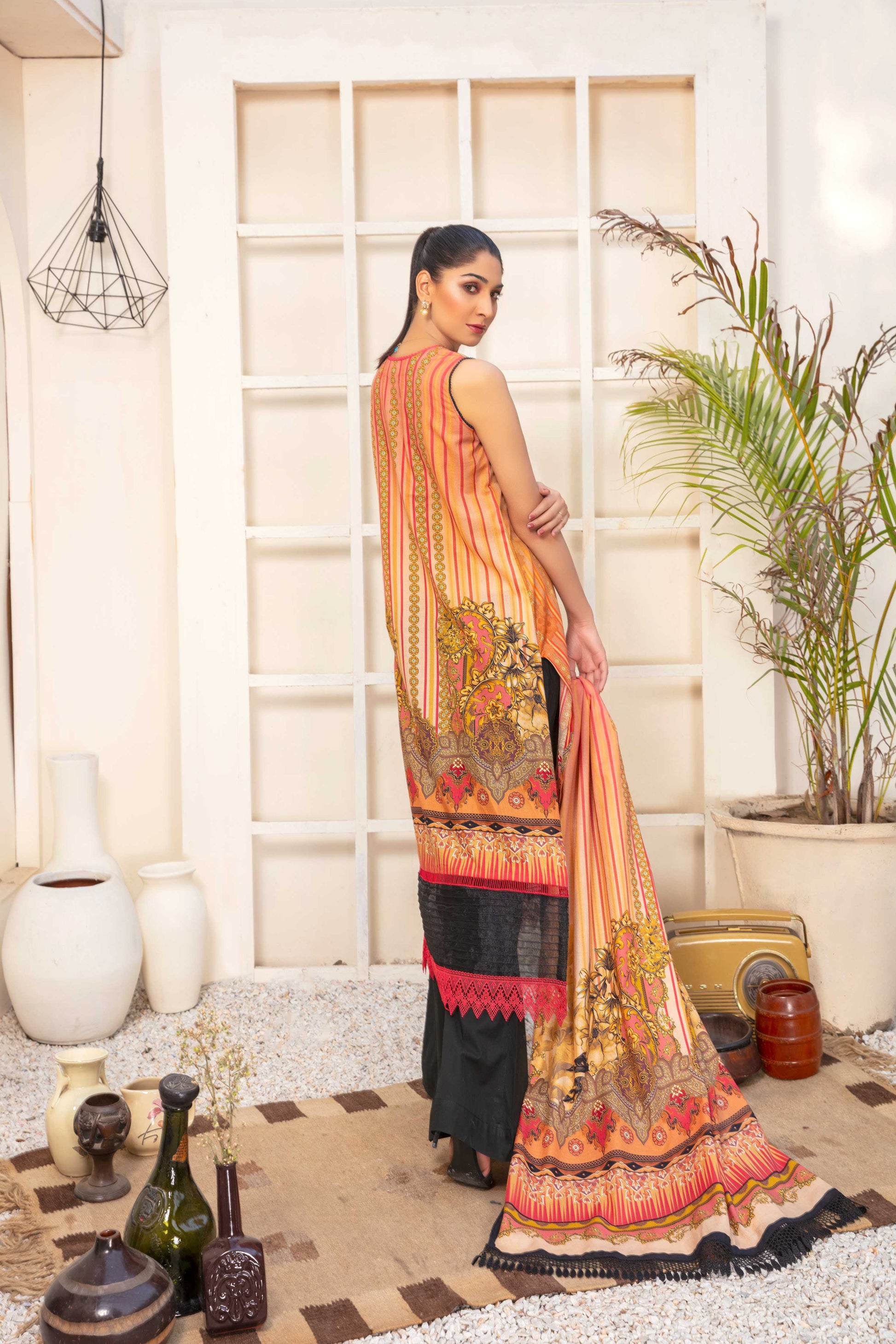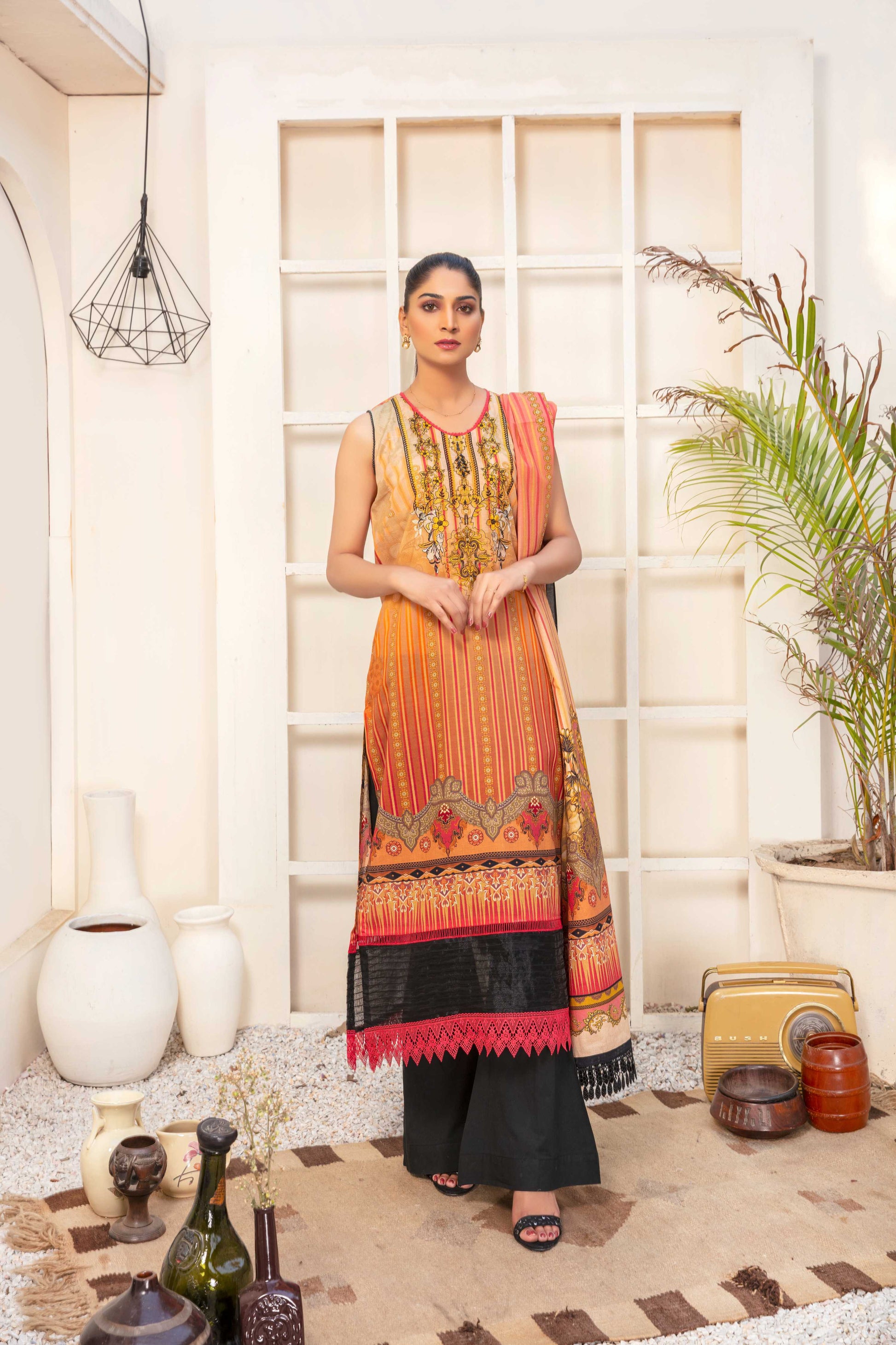 Presenting the perfect assemblage of eye-catching colors and unique designs with our signature fabric in the form of ‘Tangerine’ from our Bagh-e-Gul Collection.