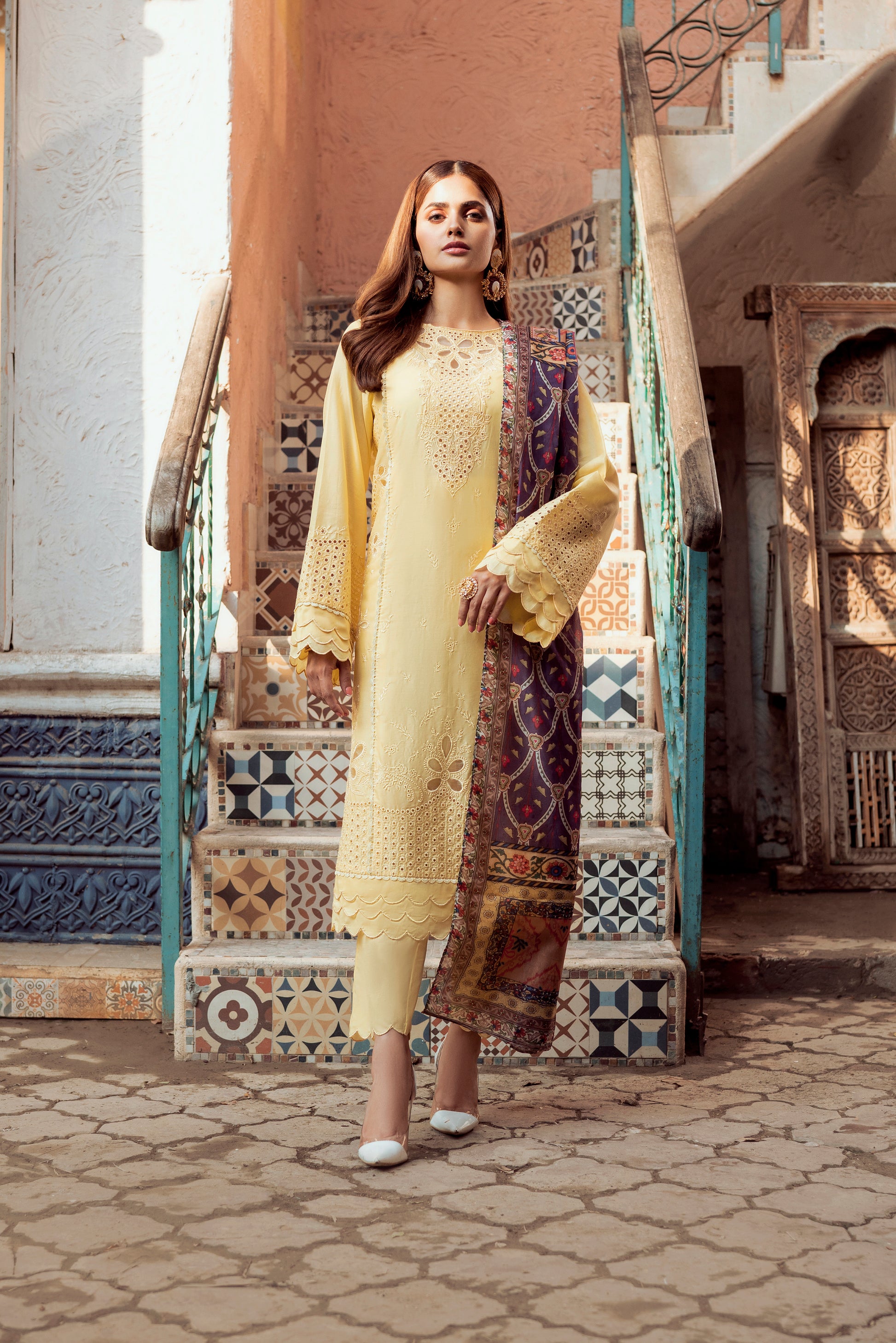 -Embroidered Lawn Shirt Front Side Panel 2 Pc