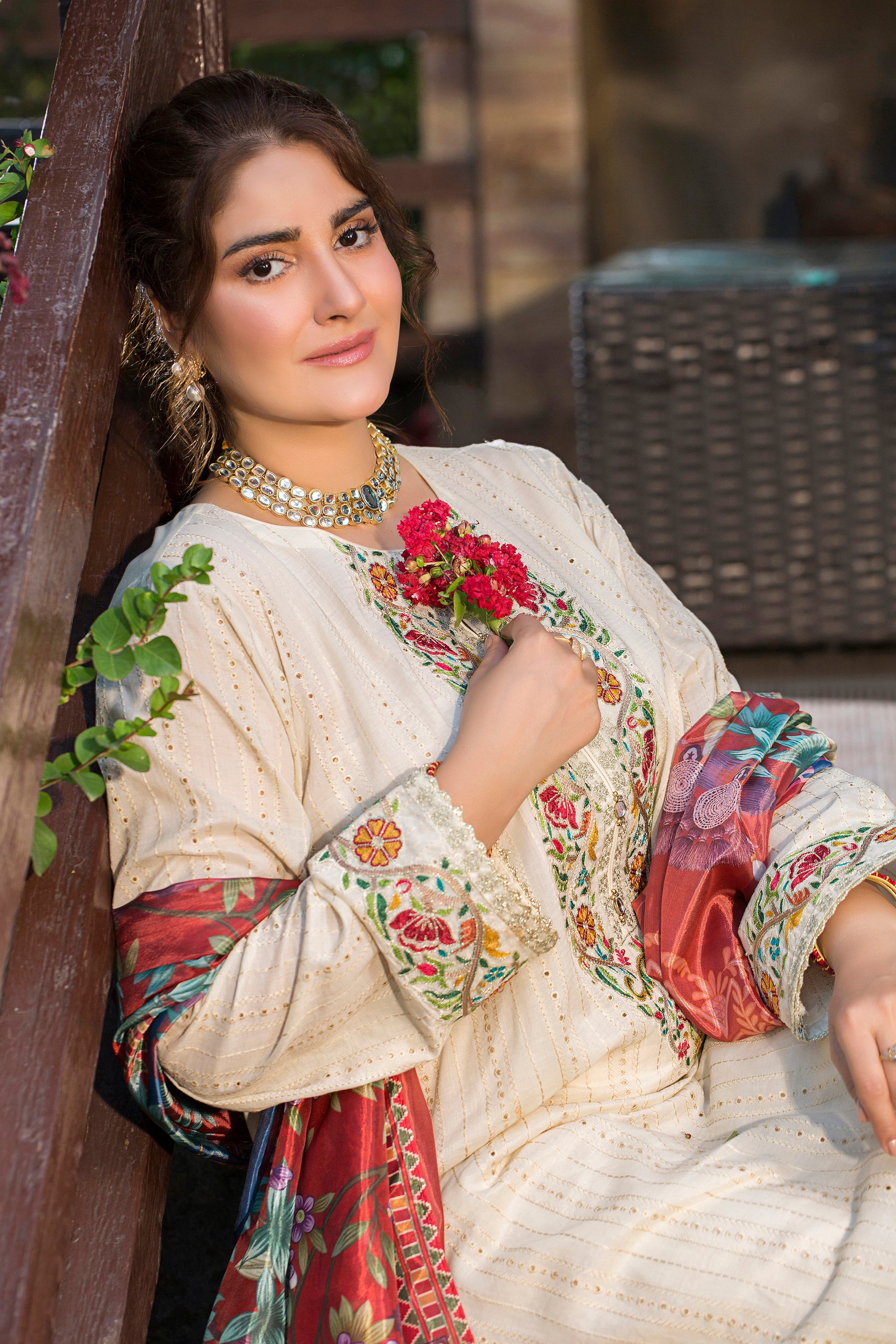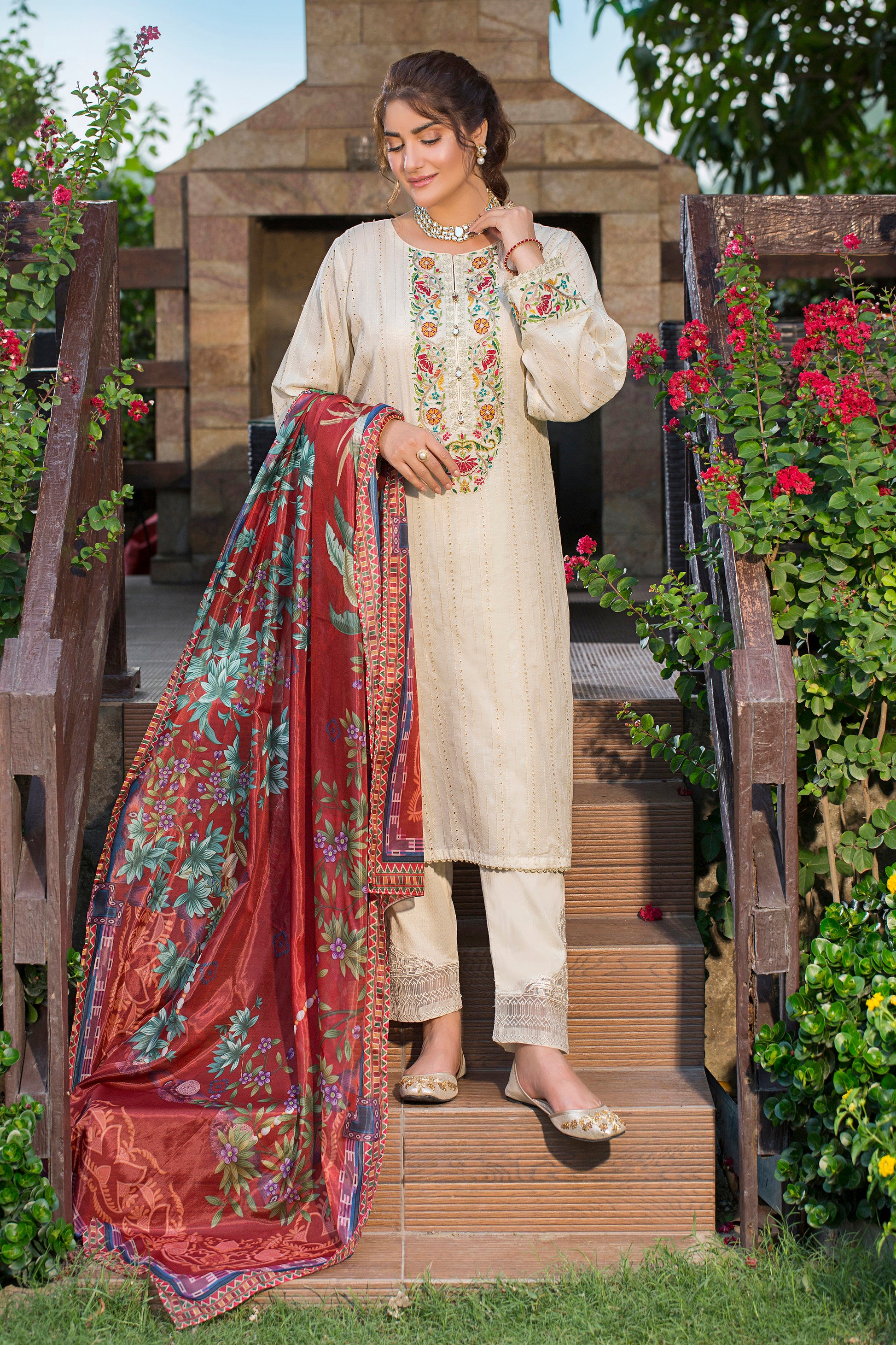-Embroidered Solid light Lawn Shirt Front 1.35 Mtr