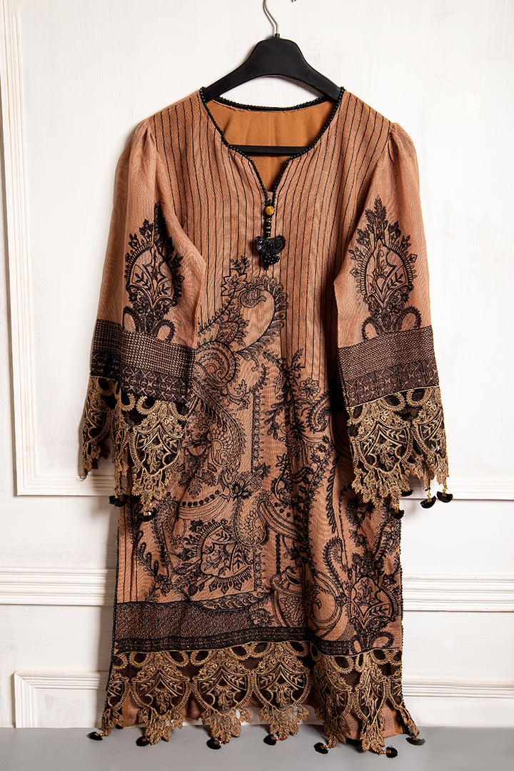 Embroidered Organza Patti Daman + Sleeves 2 Meter