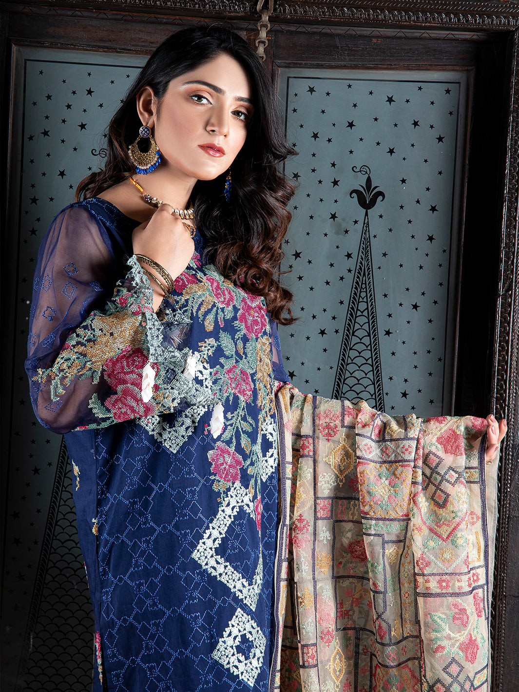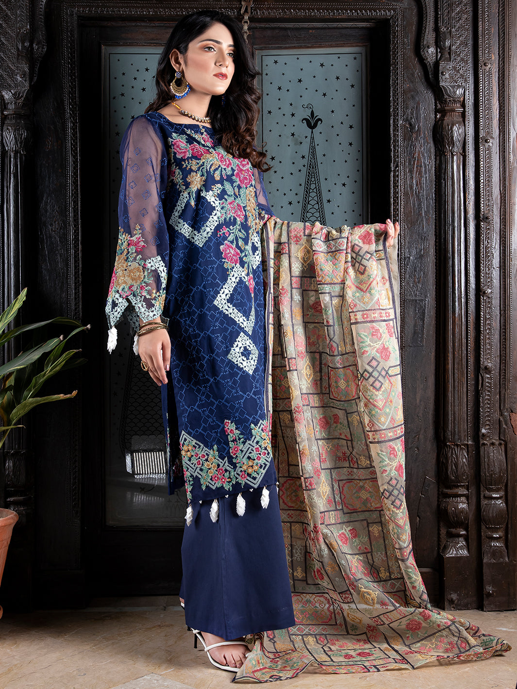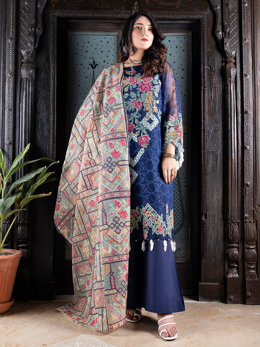 Striking design in the perfect deep blue color will make you a must-notice presence anywhere. Available in unstitched 3 piece.