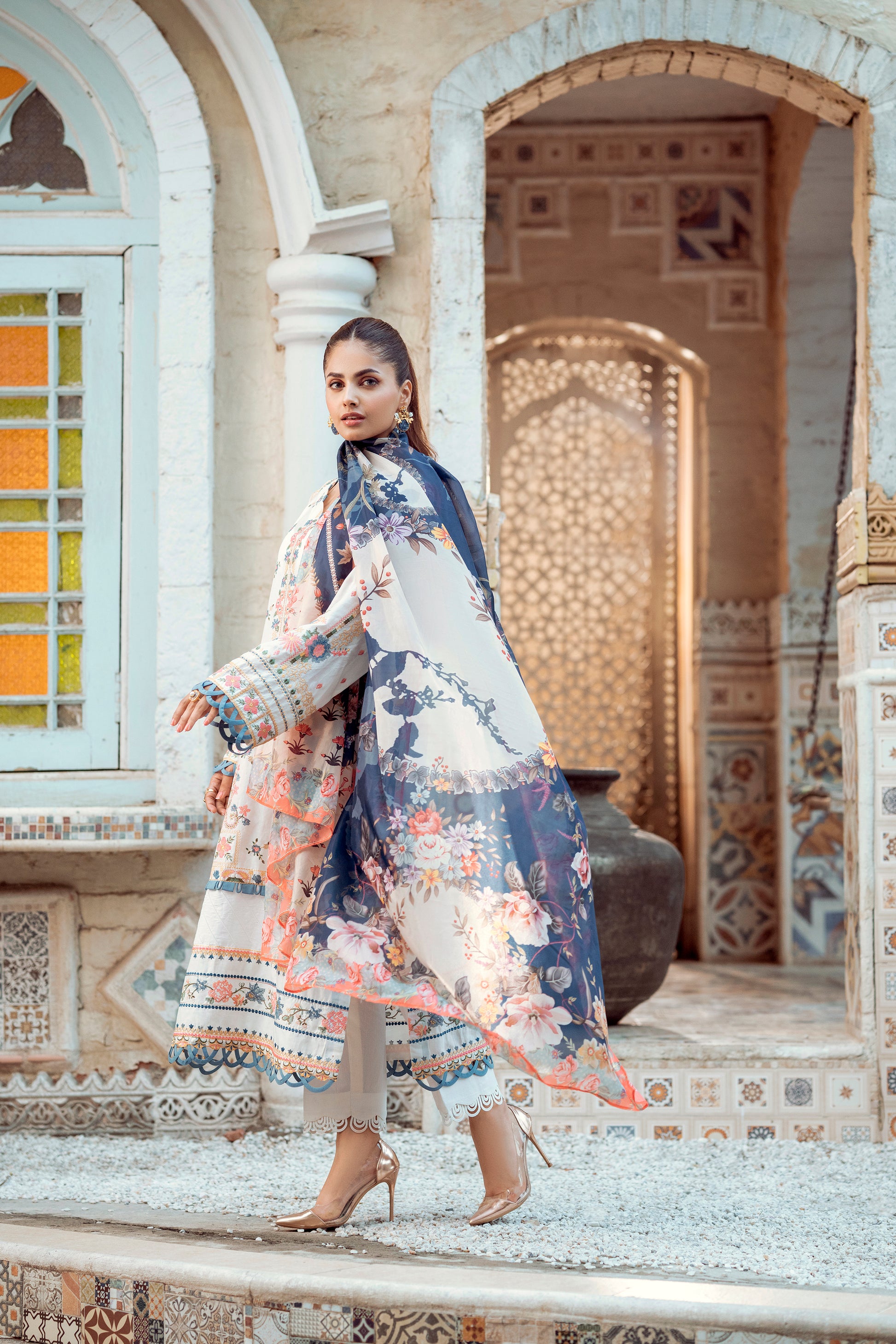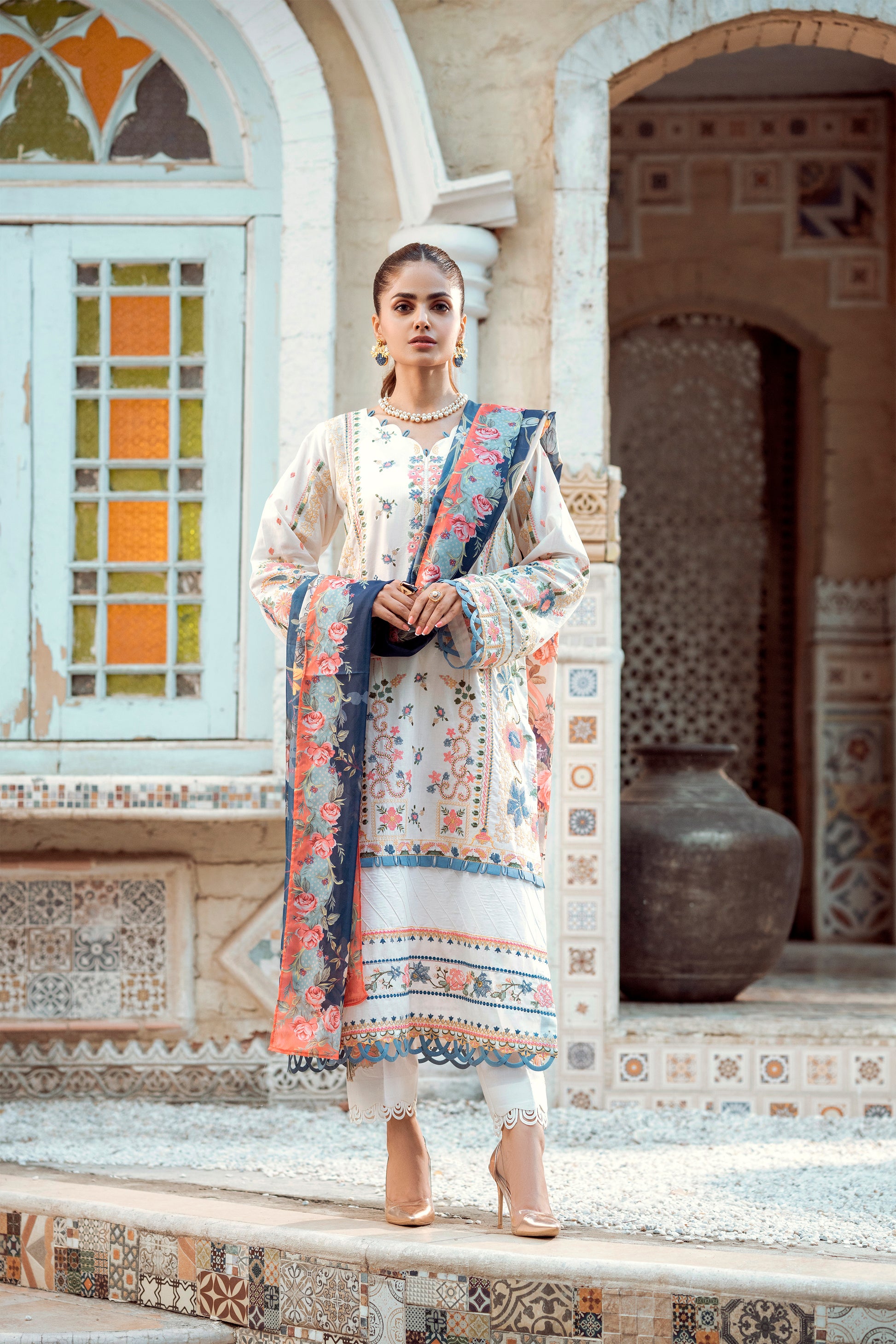 -Embroidered Front & back Border 2 yards